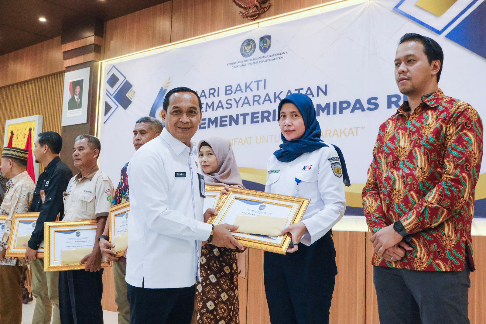 Penghargaan tersebut diberikan dalam rangkaian Hari Bakti Pemasyarakatan (HBP) ke-61 yang berlangsung di Aula Lapas Kelas I Palembang, Senin (28/4/2025).