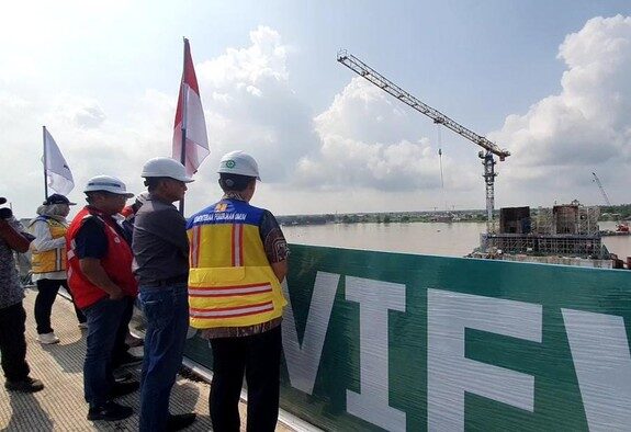Dengan panjang 1,68 kilometer, proyek Jembatan Musi V terus berlanjut tanpa hambatan besar. Namun, tingginya lalu lintas angkutan sungai di sekitar lokasi menjadi tantangan tersendiri bagi para pekerja.
